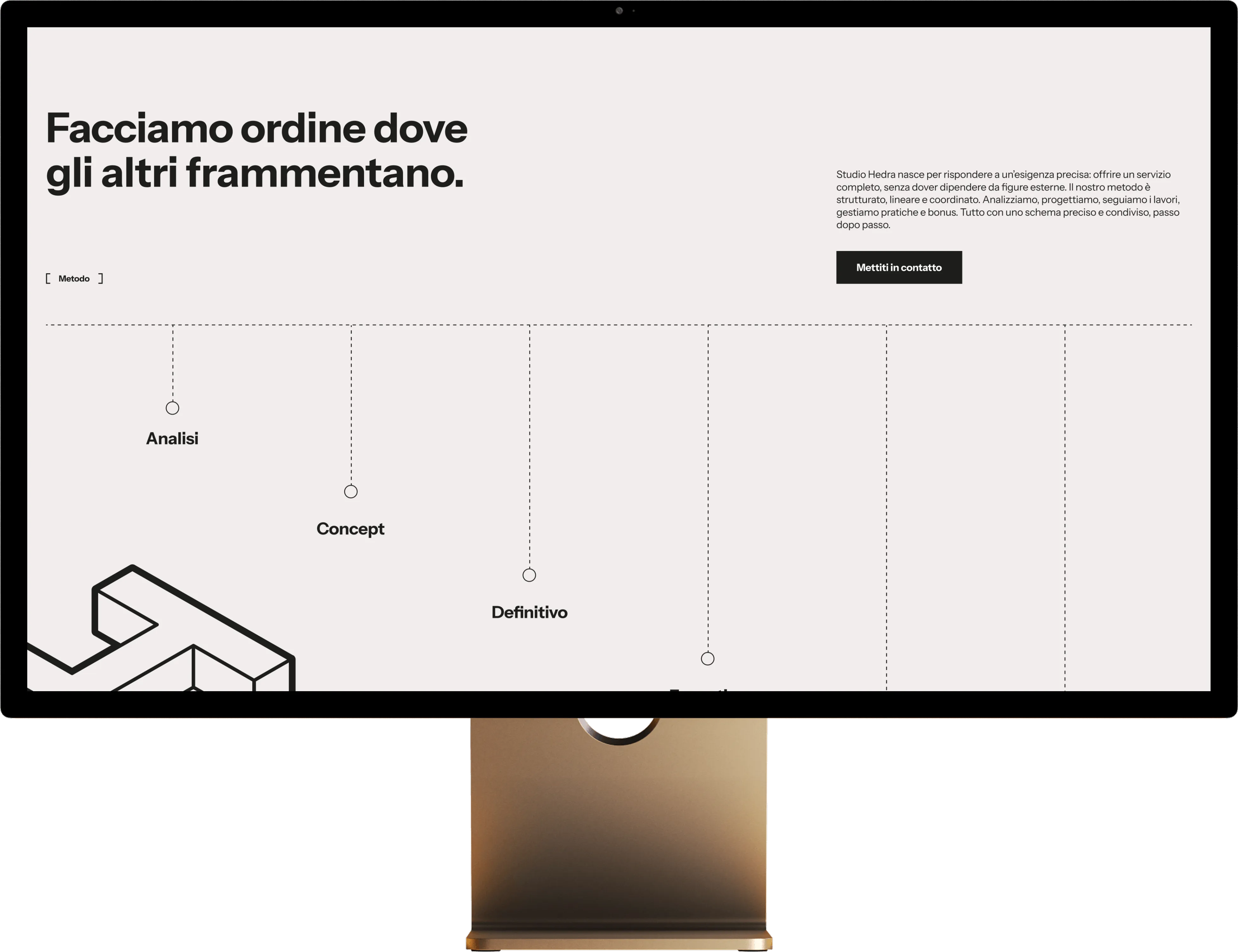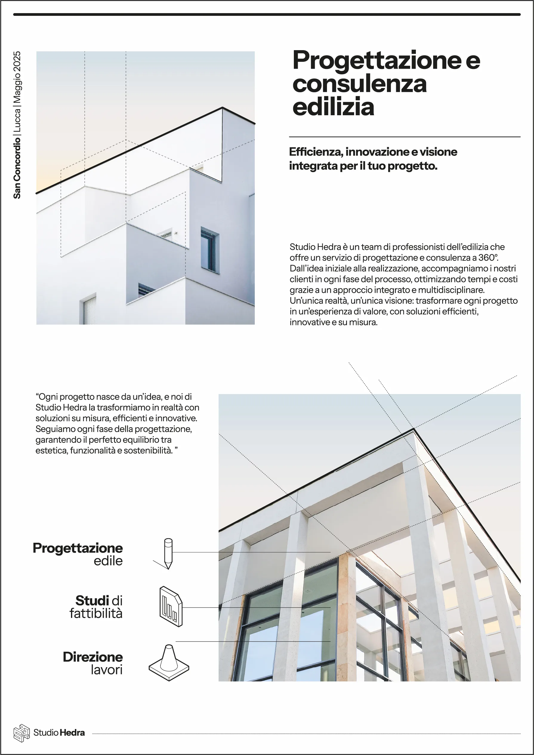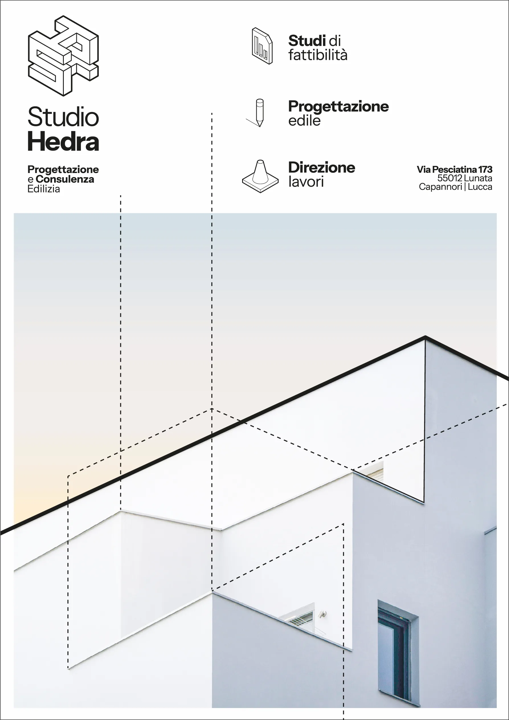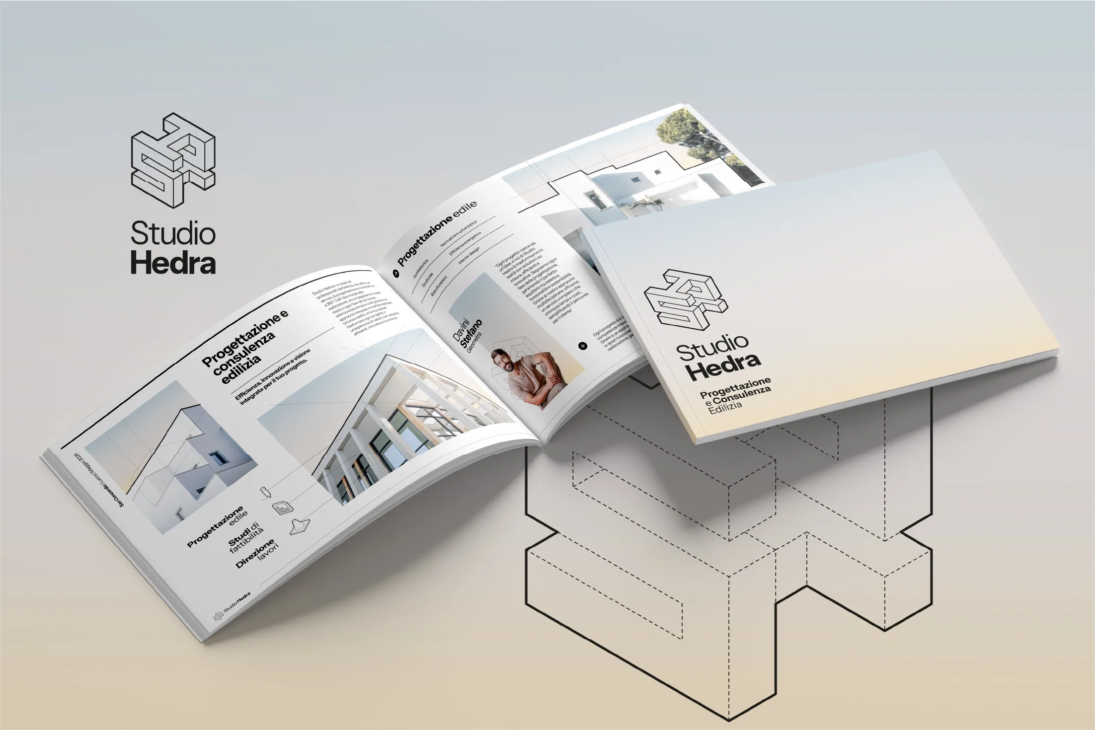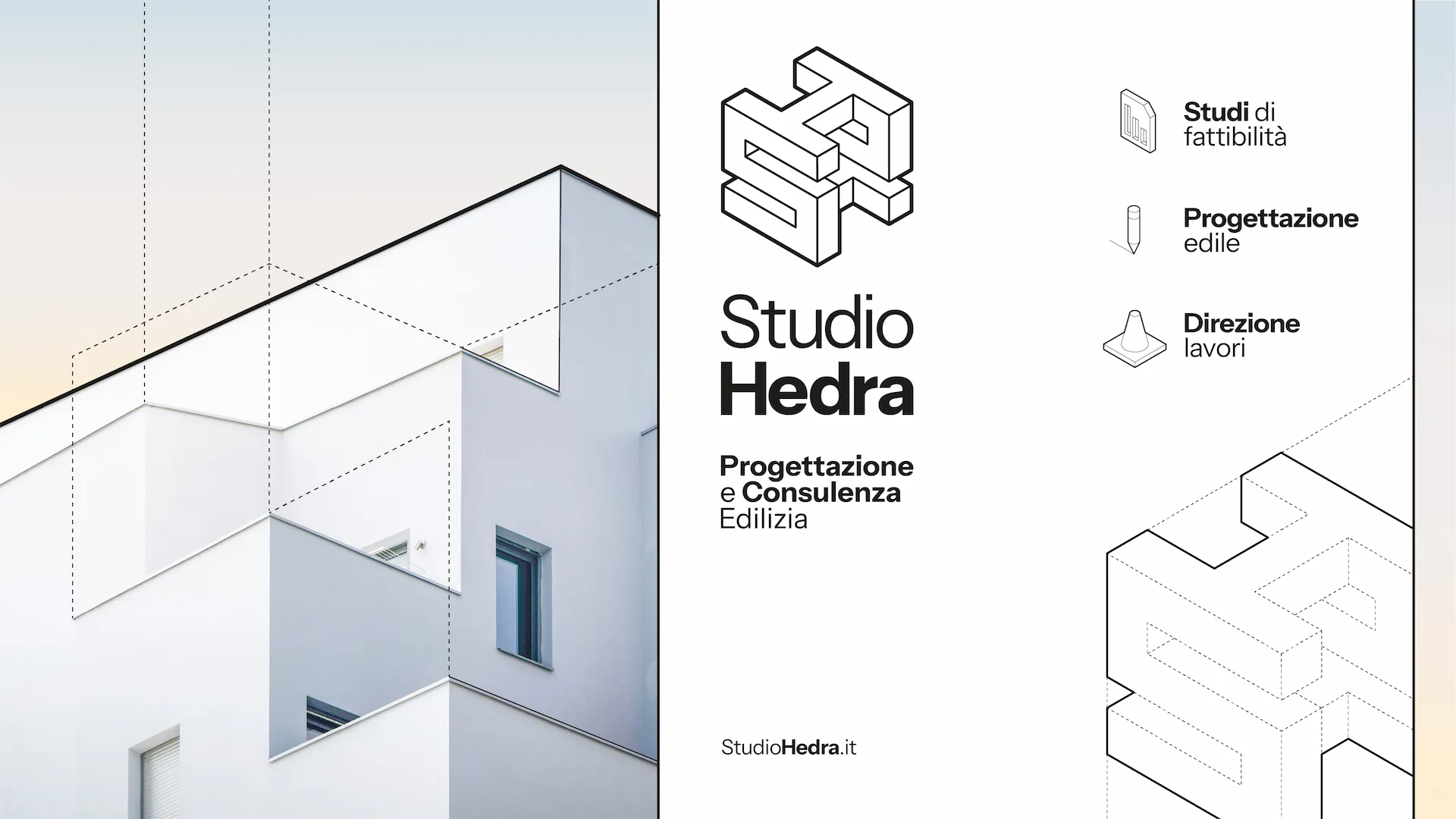 Studio Hedra nasce dall’evoluzione di uno studio tecnico in una struttura più ambiziosa: organizzata, riconoscibile, orientata all’efficienza. Il progetto ha trasformato un insieme di competenze in un sistema chiaro, capace di comunicare metodo, solidità e controllo. Un’identità pensata per chi cerca progettazione senza dispersioni, con un unico interlocutore e una visione precisa.